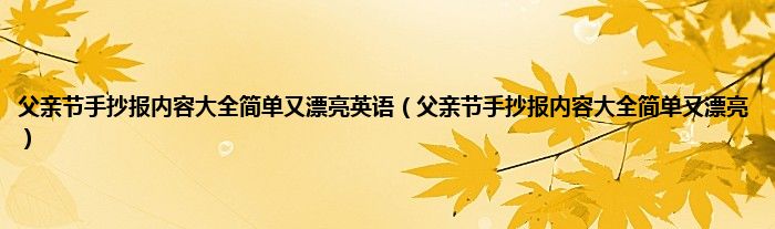 本文,父亲节手抄报内容大全简单又漂亮英语,父亲节手抄报内容大全简单又漂亮到此就分享完毕,希望对大家有所帮助。