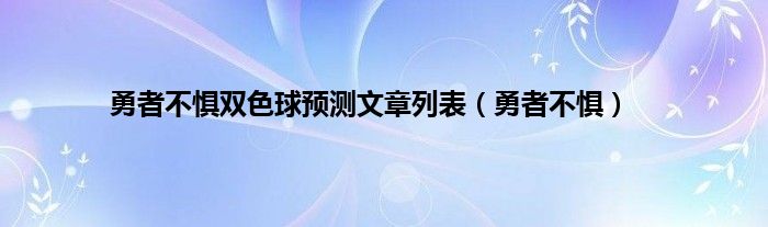 大家好,小问来为大家解答以上问题。勇者不惧双色球预测文章列表,勇者不惧这个很多人还不知道,现在让我们一起来看看吧!
