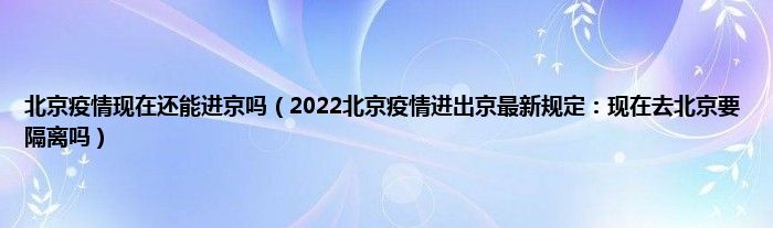 本文,北京疫情现在还能进京吗,2022北京疫情进出京最新规定:现在去北京要隔离吗到此就分享完毕,希望对大家有所帮助。
