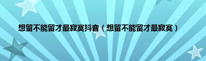 想留不能留才最寂寞抖音(想留不能留才最寂寞)
