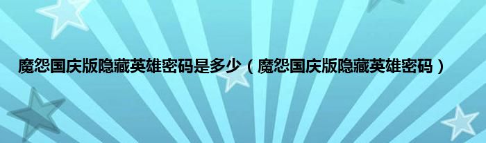 魔怨国庆版隐藏英雄密码是多少(魔怨国庆版隐藏英雄密码)