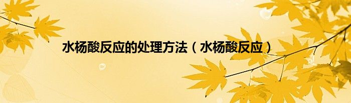 以上就是【水杨酸反应的处理方法,水杨酸反应】相关内容。