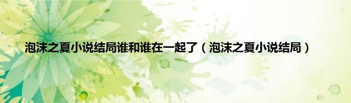 泡沫之夏小说结局谁和谁在一起了(泡沫之夏小说结局)