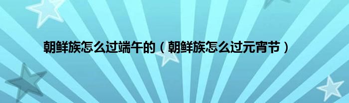 大家好,综合小编来为大家讲解下。朝鲜族怎么过端午的,朝鲜族怎么过元宵节这个很多人还不知道,现在让我们一起来看看吧!