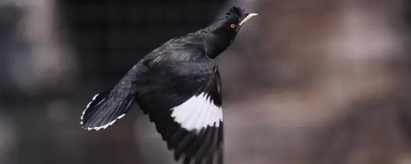 翅膀和尾巴有白条的黑鸟是八哥。八哥体长23-28厘米;通体黑色,前额有长而竖直的羽簇,有如冠状,翅具白色翅斑,飞翔时尤为明显;尾羽和尾下覆羽具白色端斑;嘴乳黄色,脚黄色。主要栖息于海拔2000米以下的低山丘陵和山脚平原地带的次生阔叶林、竹林和林缘疏林中。以蝗虫、蚱蜢、金龟子、蛇、毛虫、地老虎、蝇、虱等昆虫和昆虫幼虫为食,也吃谷粒、植物果实和种子等植物性食物。