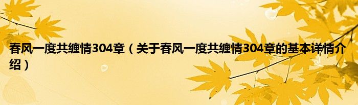 春风一度共缠情304章(关于春风一度共缠情304章的基本详情介绍)