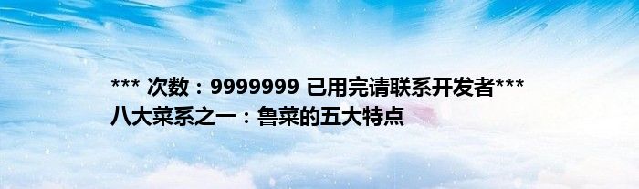 本文*** 次数:9999999 已用完请联系开发者*** 八大菜系之一:鲁菜的五大特点到此分享完毕,希望对大家有所帮助。