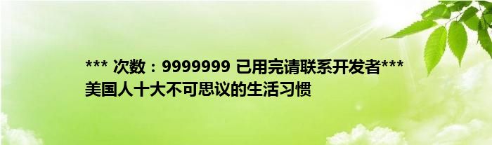 大家好,综合小编来为大家讲解下。*** 次数:9999999 已用完请联系开发者*** 美国人十大不可思议的生活习惯这个很多人还不知道,现在让我们一起来看看吧!