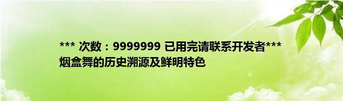 ***次数:9999999已用完请联系开发者***烟盒舞的历史溯源及鲜明特色