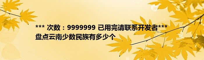 大家好,综合小编来为大家讲解下。*** 次数:9999999 已用完请联系开发者*** 盘点云南少数民族有多少个这个很多人还不知道,现在让我们一起来看看吧!