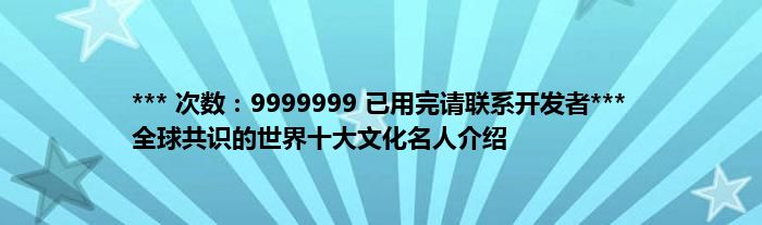 大家好,综合小编来为大家讲解下。*** 次数:9999999 已用完请联系开发者*** 全球共识的世界十大文化名人介绍这个很多人还不知道,现在让我们一起来看看吧!
