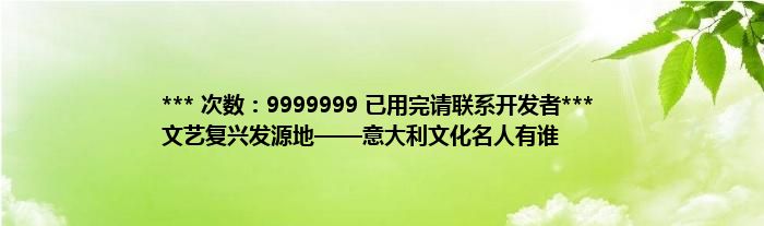 本文*** 次数:9999999 已用完请联系开发者*** 文艺复兴发源地——意大利文化名人有谁到此分享完毕,希望对大家有所帮助。