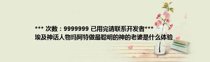 大家好,综合小编来为大家讲解下。*** 次数:9999999 已用完请联系开发者*** 埃及神话人物玛阿特做最聪明的神的老婆是什么体验这个很多人还不知道,现在让我们一起来看看吧!