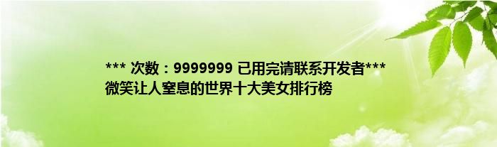 大家好,综合小编来为大家讲解下。*** 次数:9999999 已用完请联系开发者*** 微笑让人窒息的世界十大美女排行榜这个很多人还不知道,现在让我们一起来看看吧!