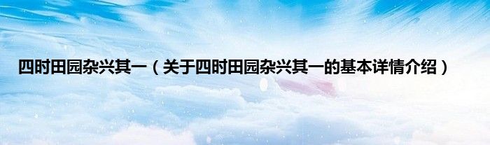 本文关于四时田园杂兴其一的基本详情介绍就讲解完毕,希望对大家有所帮助。