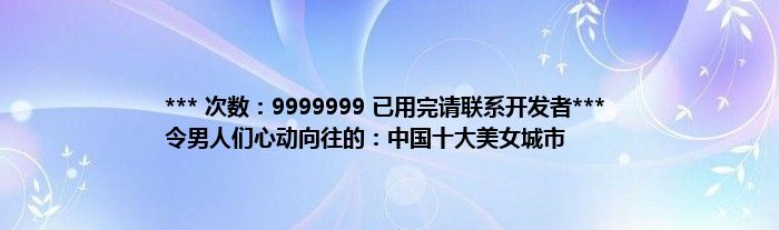 *** 次数:9999999 已用完请联系开发者*** 令男人们心动向往的:中国十大美女城市