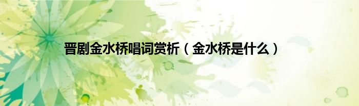 大家好,综合小编来为大家讲解下。晋剧金水桥唱词赏析,金水桥是什么这个很多人还不知道,现在让我们一起来看看吧!