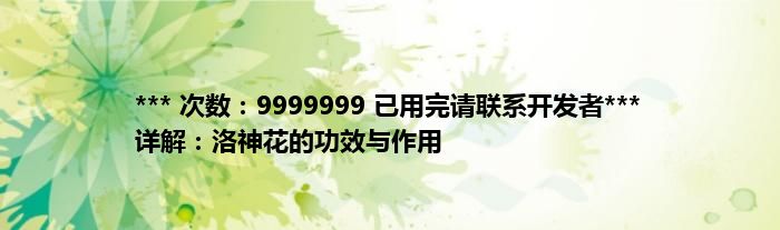 本文*** 次数:9999999 已用完请联系开发者*** 详解:洛神花的功效与作用到此分享完毕,希望对大家有所帮助。