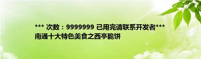 本文*** 次数:9999999 已用完请联系开发者*** 南通十大特色美食之西亭脆饼到此分享完毕,希望对大家有所帮助。