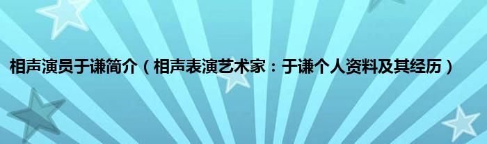 大家好,综合小编来为大家讲解下。相声演员于谦简介,相声表演艺术家:于谦个人资料及其经历这个很多人还不知道,现在让我们一起来看看吧!