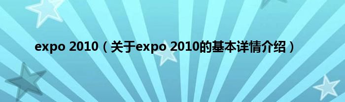 本文关于expo 2010的基本详情介绍就讲解完毕,希望对大家有所帮助。