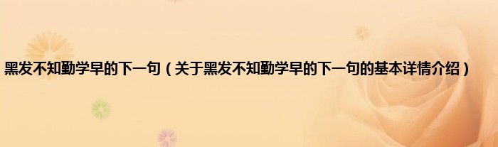 本文关于黑发不知勤学早的下一句的基本详情介绍就讲解完毕,希望对大家有所帮助。
