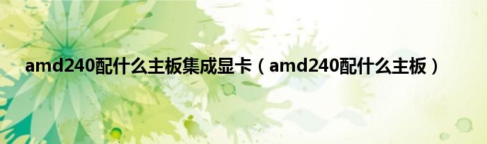 以上就是【amd240配什么主板集成显卡,amd240配什么主板】相关内容。