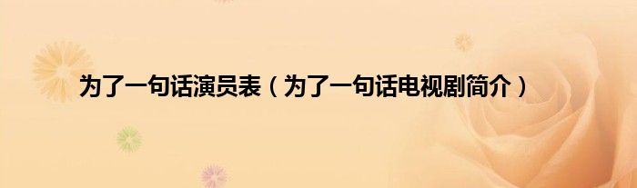 欢迎观看本篇文章,小升来为大家解答以上问题。为了一句话演员表,为了一句话电视剧简介很多人还不知道,现在让我们一起来看看吧!