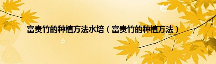 以上就是【富贵竹的种植方法水培,富贵竹的种植方法】相关内容。