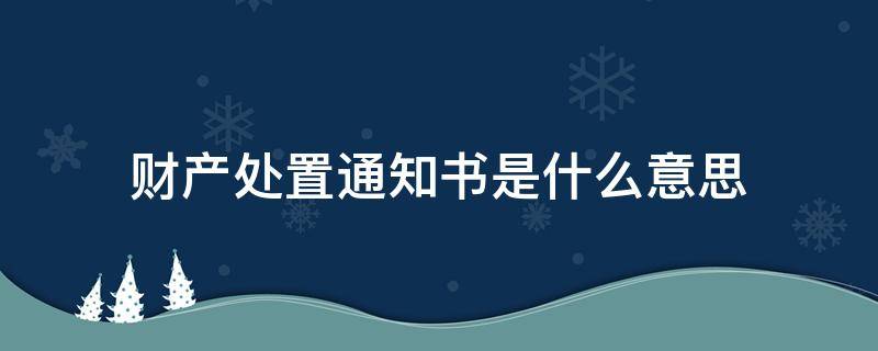 财产处置通知书是指债权人通知债务人将依双方签订合同中约定占有债务人的财产予以留詈的法律文书。财产是指拥有的金钱、物资、房屋、土地等物质财富,国家财产、私人财产,具有金钱价值,并受到法律保护的权利的总称。大体上,财产有三种,即动产、不动产和知识财产(即知识产权)。由于净资产是企业财产或财富的积累并最终归出资者所有,所以,财产在一定意义上就具有企业和出资者双重所有的性质相比之下,资产则只归企业所有。
