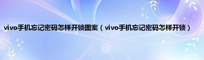 vivo手机忘记密码怎样开锁图案(vivo手机忘记密码怎样开锁)