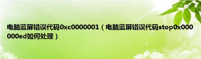 电脑蓝屏错误代码0xc0000001(电脑蓝屏错误代码stop0x000000ed如何处理)