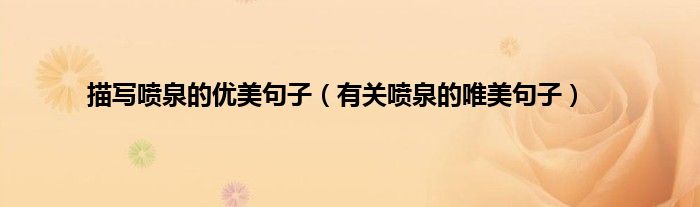 欢迎观看本篇文章,小升来为大家解答以上问题。描写喷泉的优美句子,有关喷泉的唯美句子很多人还不知道,现在让我们一起来看看吧!
