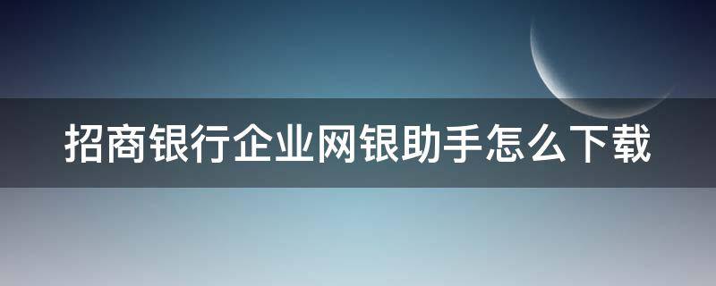 招商银行企业网银助手怎么下载