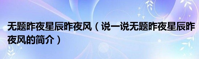 夏弥来为大家解答以下的问题,无题昨夜星辰昨夜风,说一说无题昨夜星辰昨夜风的简介,现在让我们一起来看看吧!