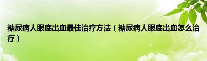 糖尿病人眼底出血最佳治疗方法(糖尿病人眼底出血怎么治疗)
