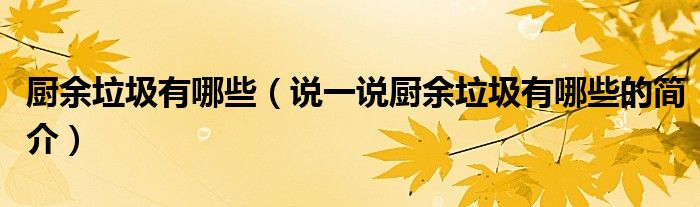 厨余垃圾有哪些(说一说厨余垃圾有哪些的简介)