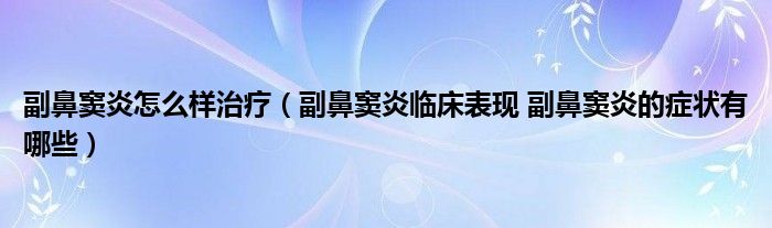 副鼻窦炎怎么样治疗(副鼻窦炎临床表现 副鼻窦炎的症状有哪些)
