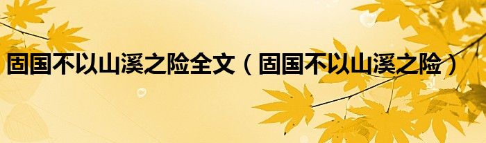 关于固国不以山溪之险全文,固国不以山溪之险这个很多人还不知道,今天菲菲来为大家解答以上的问题,现在让我们一起来看看吧!