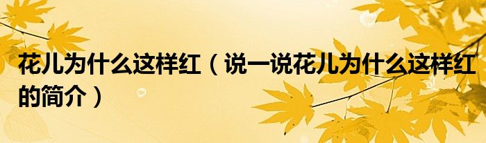 夏弥来为大家解答以下的问题,花儿为什么这样红,说一说花儿为什么这样红的简介,现在让我们一起来看看吧!