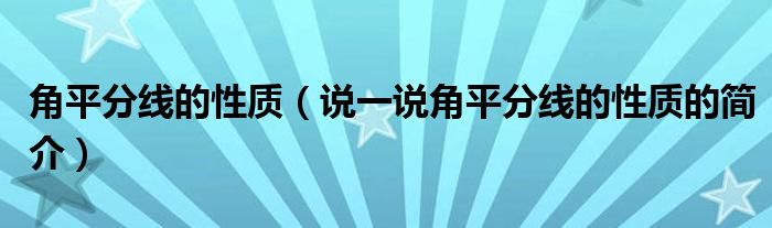 夏弥来为大家解答以下的问题,角平分线的性质,说一说角平分线的性质的简介,现在让我们一起来看看吧!