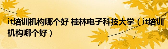 关于it培训机构哪个好 桂林电子科技大学,it培训机构哪个好这个很多人还不知道,今天菲菲来为大家解答以上的问题,现在让我们一起来看看吧!