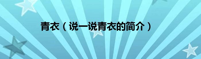 夏弥来为大家解答以下的问题,青衣,说一说青衣的简介,现在让我们一起来看看吧!