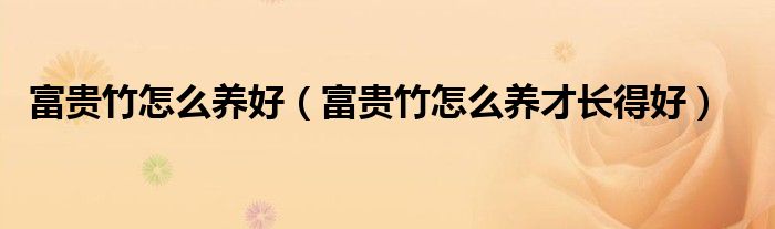 关于富贵竹怎么养好,富贵竹怎么养才长得好这个很多人还不知道,今天菲菲来为大家解答以上的问题,现在让我们一起来看看吧!