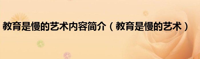 关于教育是慢的艺术内容简介,教育是慢的艺术这个很多人还不知道,今天菲菲来为大家解答以上的问题,现在让我们一起来看看吧!
