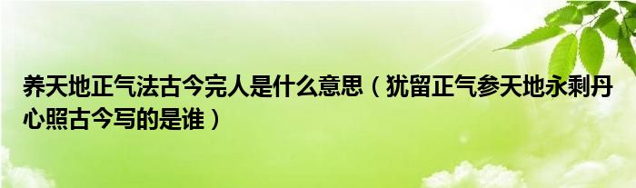 养天地正气法古今完人是什么意思(犹留正气参天地永剩丹心照古今写的是谁)