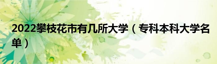 大家好,乐儿来为大家解答以下问题,2022攀枝花市有几所大学,专科本科大学名单很多人还不知道,现在让我们一起来看看吧!