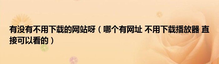 关于有没有不用下载的网站呀,哪个有网址 不用下载播放器 直接可以看的这个很多人还不知道,今天菲菲来为大家解答以上的问题,现在让我们一起来看看吧!