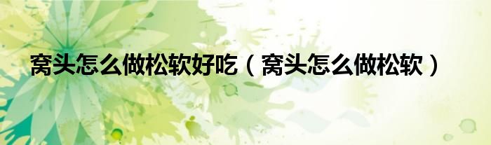 窝头怎么做松软好吃(窝头怎么做松软)
