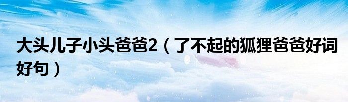 关于大头儿子小头爸爸2,了不起的狐狸爸爸好词好句这个很多人还不知道,今天菲菲来为大家解答以上的问题,现在让我们一起来看看吧!